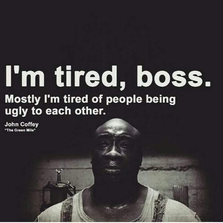 Bobby Umar Keynote Speaker On Twitter I M Tired Boss Mostly I M Tired Of People Being Ugly To Each Other John Coffey From The Green Mile Movie Quotes Leadership Politics